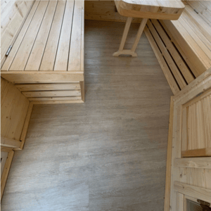 Для обогрева используется инфракрасная система с защитой от перегрева, обеспечивающая быстрый и равномерный нагрев. В качестве напольного покрытия применяется кварц-виниловая плитка (SPC) с текстурой натурального дерева, отличающаяся повышенной износостойкостью и эстетичным внешним видом. Для максимальной энергоэффективности монтаж выполняется на специальную теплоизолирующую подложку. -