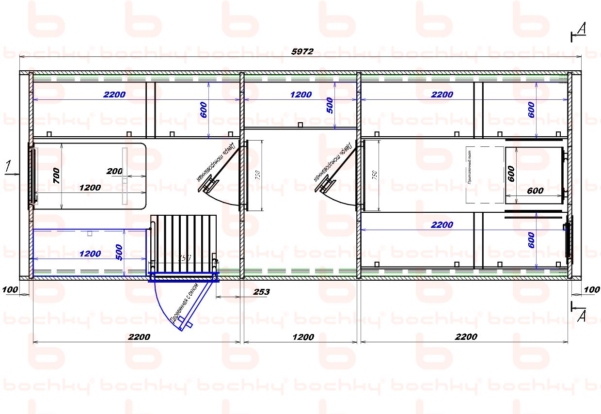 | Длина раздевалки (внутренний размер) | 2200 мм |