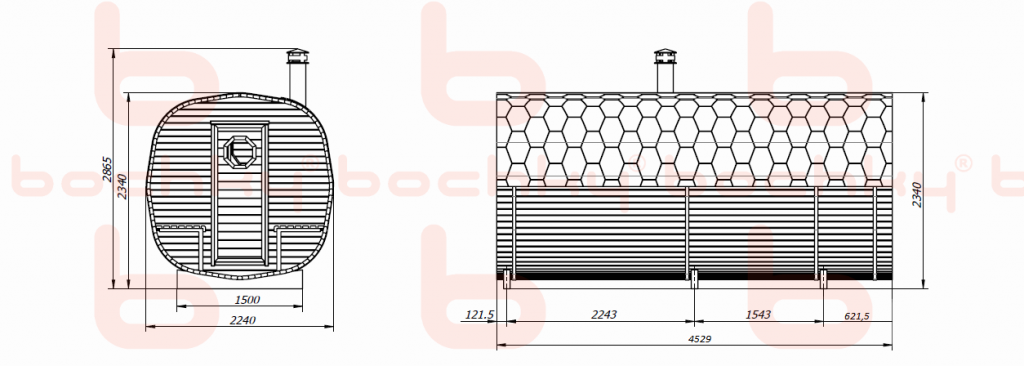 В базовой комплектации. Grill’D Bochky Short с внутренней топкой. Загрузка - 40 кг камней. Сталь повышенной прочности